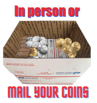 We will text or email you a free prepaid USPS shipping label—safe & fully insured. Your name and address will be on it as the sender and addressed to us. We will send easy shipping instructions to ensure your coins are delivered to us the proven safest way possible.